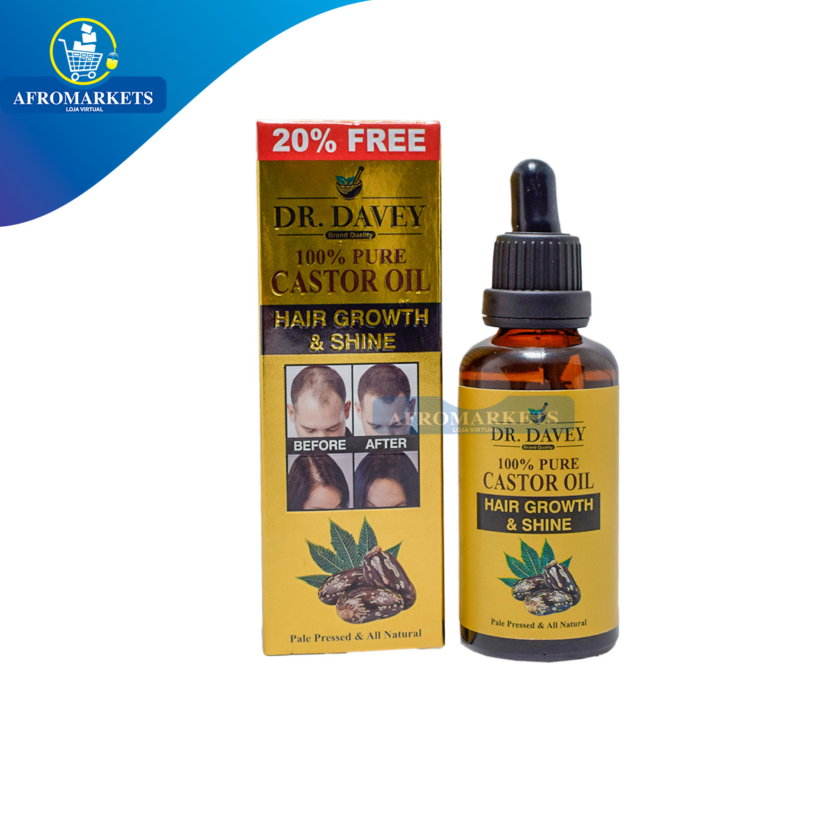 Dr. Davey óleo de Rícino Puro para Crescimento e Brilho do Cabelo 50ml